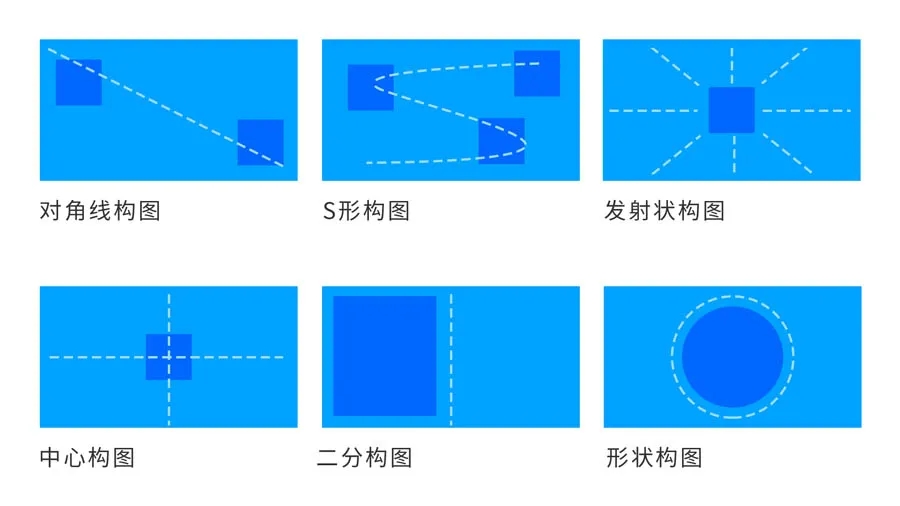 主體和文案組合的形式可以是圓形,三角形,矩形等形狀構(gòu)圖。注意如果是用三角形構(gòu)圖,最好呈倒金字塔結(jié)構(gòu),這樣更加輕便引導(dǎo)用戶進(jìn)入下一個(gè)信息層。