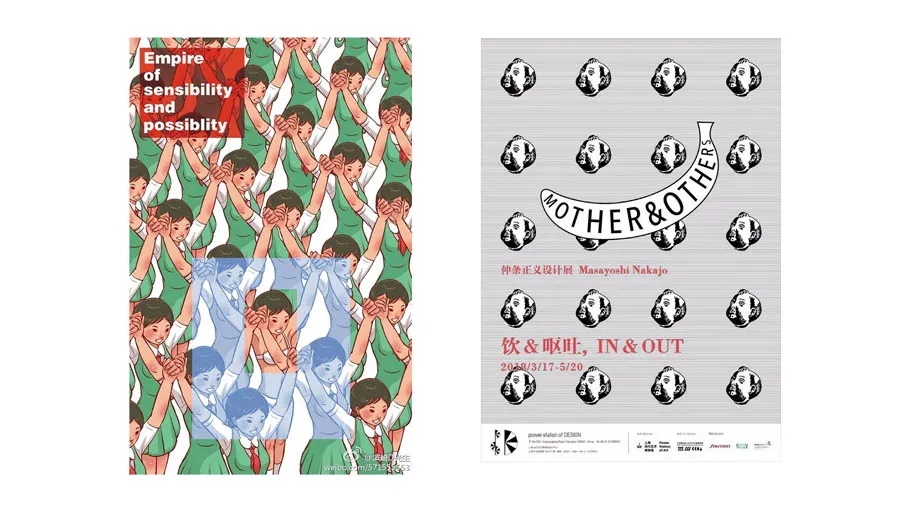 這個具有沖擊感的形象其實和這次展覽主題“飲&嘔吐”呼應(yīng)的,設(shè)計師想表達(dá)仲條正義的創(chuàng)作于人生,正如這個重復(fù)的形象,不斷吸收,不斷推翻,最后不斷創(chuàng)造。