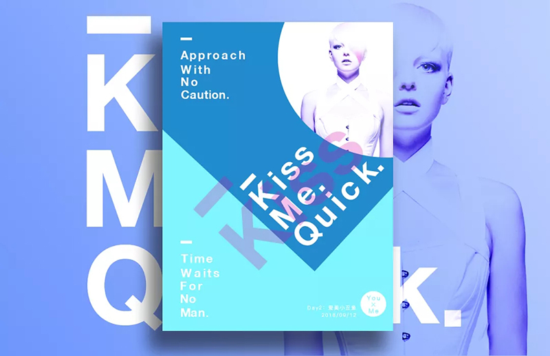 這種構圖打破了人們從左往右 從上往下的閱讀習慣,更加有視覺沖擊力,讓人耳目一新。這種排版,往往重點很突出,直奔主題。這種排版方式比較新穎,一般顏色也會突出一些,能夠一下就抓人眼球,非常適合年輕的人,給人一種活力的動感,非常醒目。